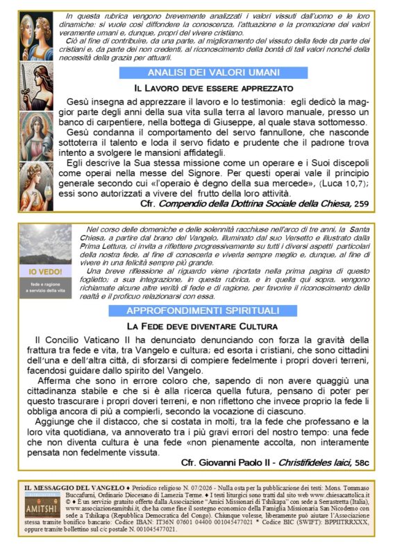 Il Foglietto viene offerto gratuitamente dall'Associazione "Amici Missionari di Tshikapa", che ha come fine il sostegno economico della Famiglia Missionaria San Nicodemo, con sede a Tshikapa, nella Repubblica Democratica del Congo.
