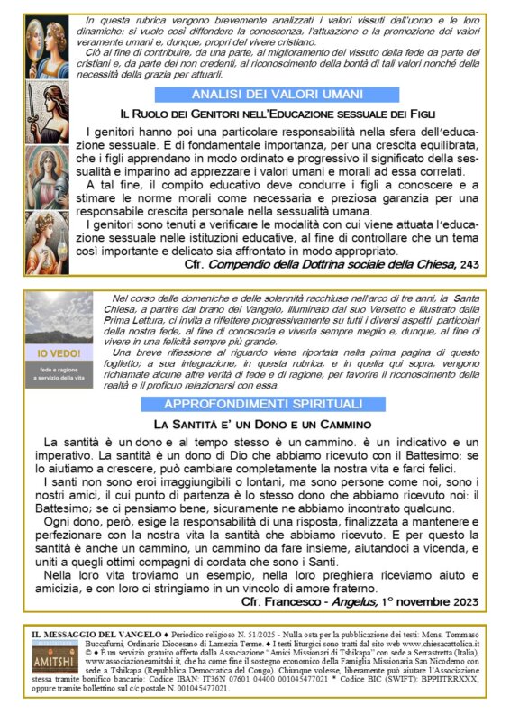 Il Foglietto viene offerto gratuitamente dall'Associazione "Amici Missionari di Tshikapa", che ha come fine il sostegno economico della Famiglia Missionaria San Nicodemo, con sede a Tshikapa, nella Repubblica Democratica del Congo.