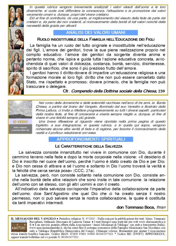 Il Foglietto viene offerto gratuitamente dall'Associazione "Amici Missionari di Tshikapa", che ha come fine il sostegno economico della Famiglia Missionaria San Nicodemo, con sede a Tshikapa, nella Repubblica Democratica del Congo.