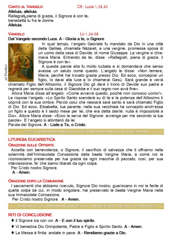 Solennità dell'Immacolata Concezione della Beata Vergine Maria - ANNO A