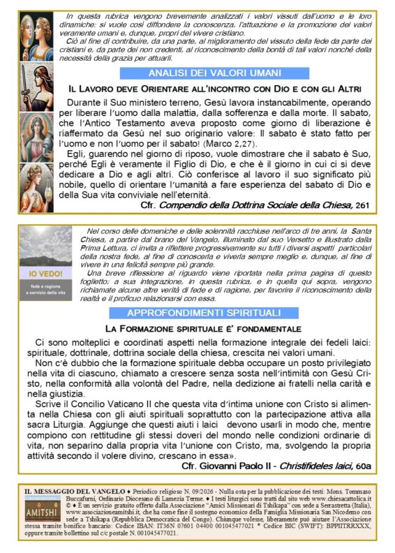 Il Foglietto viene offerto gratuitamente dall'Associazione "Amici Missionari di Tshikapa", che ha come fine il sostegno economico della Famiglia Missionaria San Nicodemo, con sede a Tshikapa, nella Repubblica Democratica del Congo.