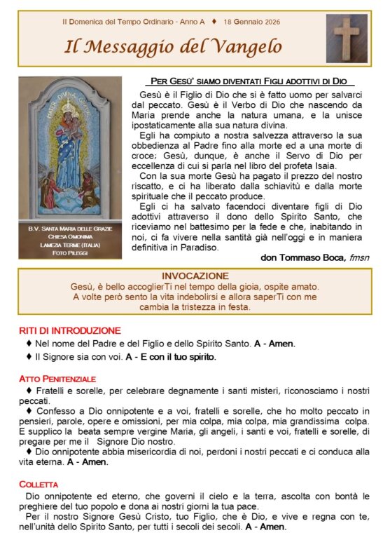 FOGLIETTO SANTA MESSA 18-01-2026