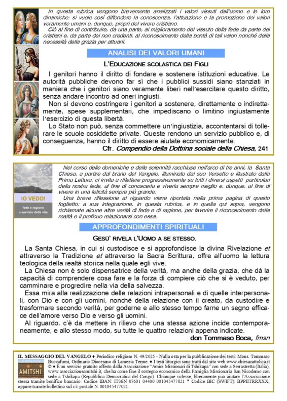 Il Foglietto viene offerto gratuitamente dall'Associazione "Amici Missionari di Tshikapa", che ha come fine il sostegno economico della Famiglia Missionaria San Nicodemo, con sede a Tshikapa, nella Repubblica Democratica del Congo.