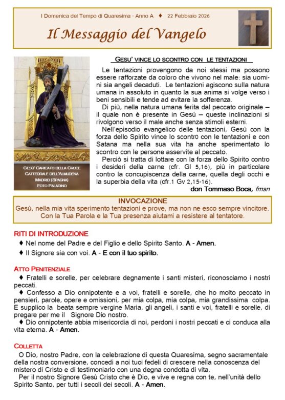 FOGLIETTO SANTA MESSA 22-02-2026