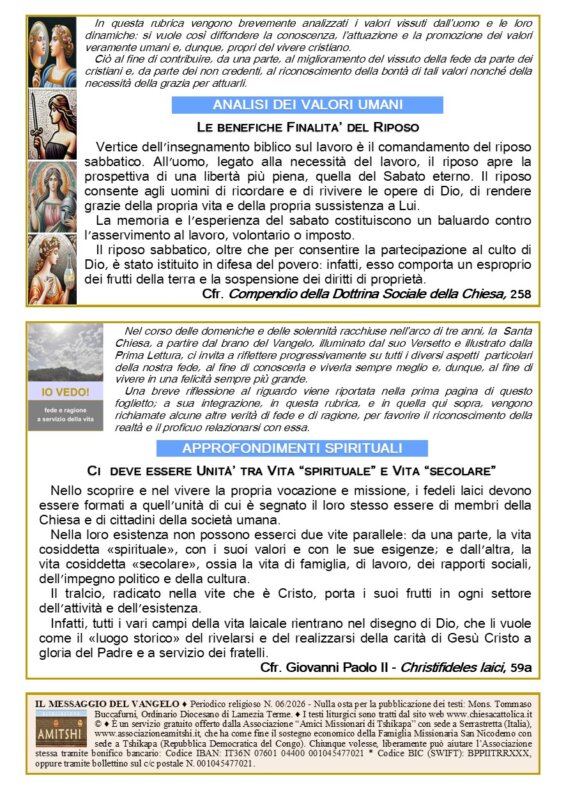 Il Foglietto viene offerto gratuitamente dall'Associazione "Amici Missionari di Tshikapa", che ha come fine il sostegno economico della Famiglia Missionaria San Nicodemo, con sede a Tshikapa, nella Repubblica Democratica del Congo.