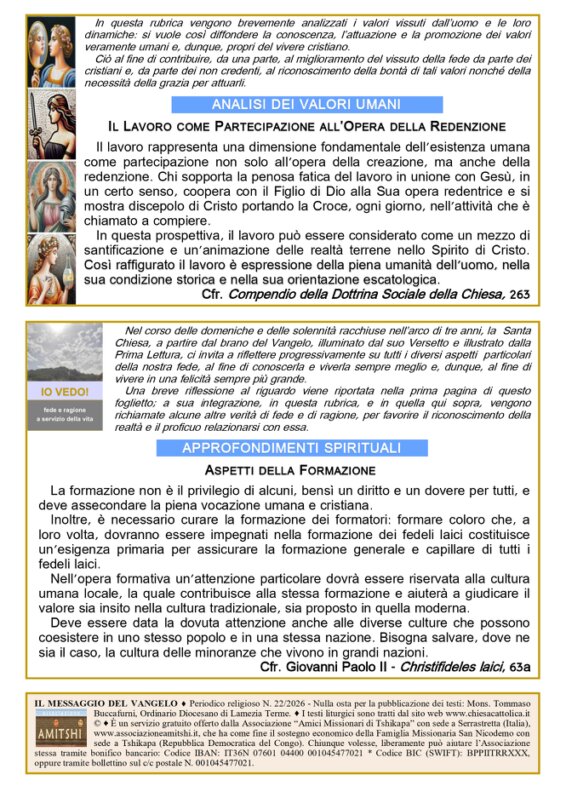Il Foglietto viene offerto gratuitamente dall'Associazione "Amici Missionari di Tshikapa", che ha come fine il sostegno economico della Famiglia Missionaria San Nicodemo, con sede a Tshikapa, nella Repubblica Democratica del Congo.